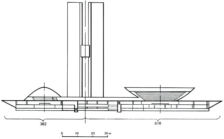2. Строительство новых административно-политических центров (Чандигарх и Бразилиа)Перенесение правительственных резиденций, как и основание новых столиц, происходило во все эпохи под давлением разнообразных политических, идеологических и экономических причин. Но первым столичным городом в его рафинированной административной форме стал Вашингтон. Начало XX в. ознаменовалось строительством федеральной столицы Австралии - Канберры, которая заменила собою Сидней, середина же текущего века дала два новых столичных центра, а именно Чандигарх и Бразилиа. Поскольку их создавали крупнейшие архитекторы современного мира, пытавшиеся комплексно решать градостроительные проблемы на основе новейших инженерно-технических достижений и художественно-философских воззрений, постольку Чандигарх и Бразилиа заслуживают обстоятельного рассмотрения. ![]() Равнина у подножия Гималаев, на которой возник Чандигарх. Художественно-философское понимание природы послужило основой архитектурного творчества Ле Корбюзье В 1951 г. после раздела провинции Пенджаб между Индией и Пакистаном правительство Восточного Пенджаба обратилось к Ле Корбюзье с предложением построить новую провинциальную столицу, которая должна была заменить утраченный Индией древний Лахор. Следует отметить, что это предложение впервые открыло перед Корбюзье увлекательную перспективу реализации его градостроительных концепций, к тому же еще в обстановке далекой азиатской страны со своеобразной национальной художественной культурой. Поэтому, несмотря на свой преклонный возраст, Корбюзье с энтузиазмом взялся за работу, быть может, видя в ней свою лебединую песню. В творческой биографии этого выдающегося мыслителя современного зодчества Чандигарх занял такое же место, как и реконструкция Гавра в творчестве Огюста Перре. Географическое положение Чандигарха, как и его размеры, были определены самим правительством. Город рассчитывался на 500 тыс. жителей, с первоочередным расселением 150 тыс. человек. Местность, предназначенная для строительства Чандигарха, была выбрана у подножия скалистых отрогов Гималаев. Она представляет собой слегка наклоненное к юго-западу плато, которое прорезают горные потоки, пересыхающие в жаркие летние месяцы. ![]() Джайпур (северная Индия) - один из градостроительных прототипов Чандигарха. Залит черным - дворцовый комплекс, примыкающий к регулярному саду Спокойный рельеф позволял осуществить здесь любую планировочную систему, но Корбюзье применил прямоугольную сетку улиц, свойственную его ранним планировочным работам. Впрочем, генеральный план Чандигарха не уподобился шахматной доске, так как в противоположность прямолинейным поперечным магистралям, идущим с юго-запада на северо-восток, продольные улицы слегка искривлялись. Городские дороги Чандигарха Корбюзье разделил на семь категорий в соответствии с их направлением и режимом движения. Криволинейная автомобильная магистраль, пересекающая город в продольном направлении, соединяет промышленный район и железнодорожный вокзал с университетским и культурным центром, который располагается на противоположной стороне города. Перпендикулярно к ней проложена главная магистраль. Она обходит по контуру с двух сторон обширный четырехугольный коммерческий центр и направляется к горной ц